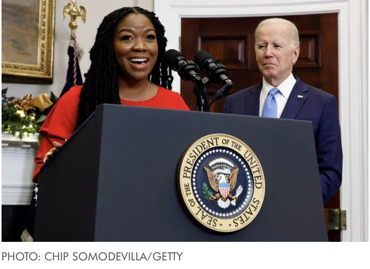 “So over the last nine months, you all have been so privy to one of the darkest moments of my life, and so today I am just standing here overwhelmed with emotions, but the most important emotion I have right now is just sincere gratitude for President Biden and his entire administration," said Cherelle.